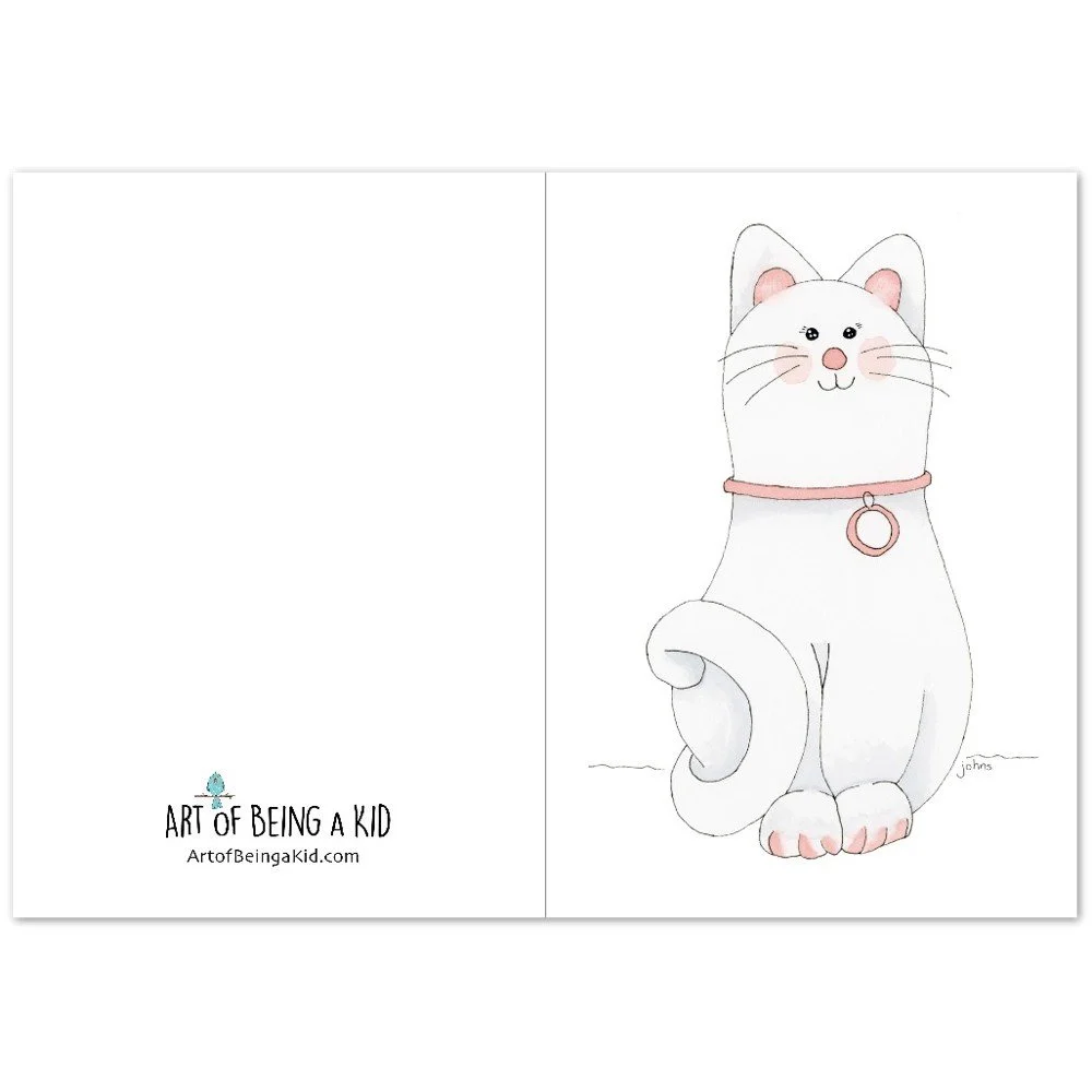 Watercolor White Cat Art Print – Enchanting Fine Art Print