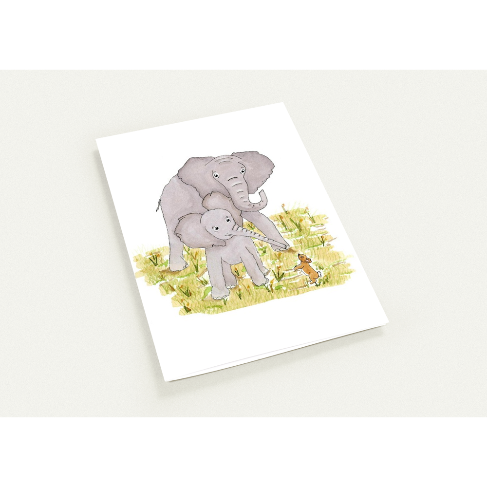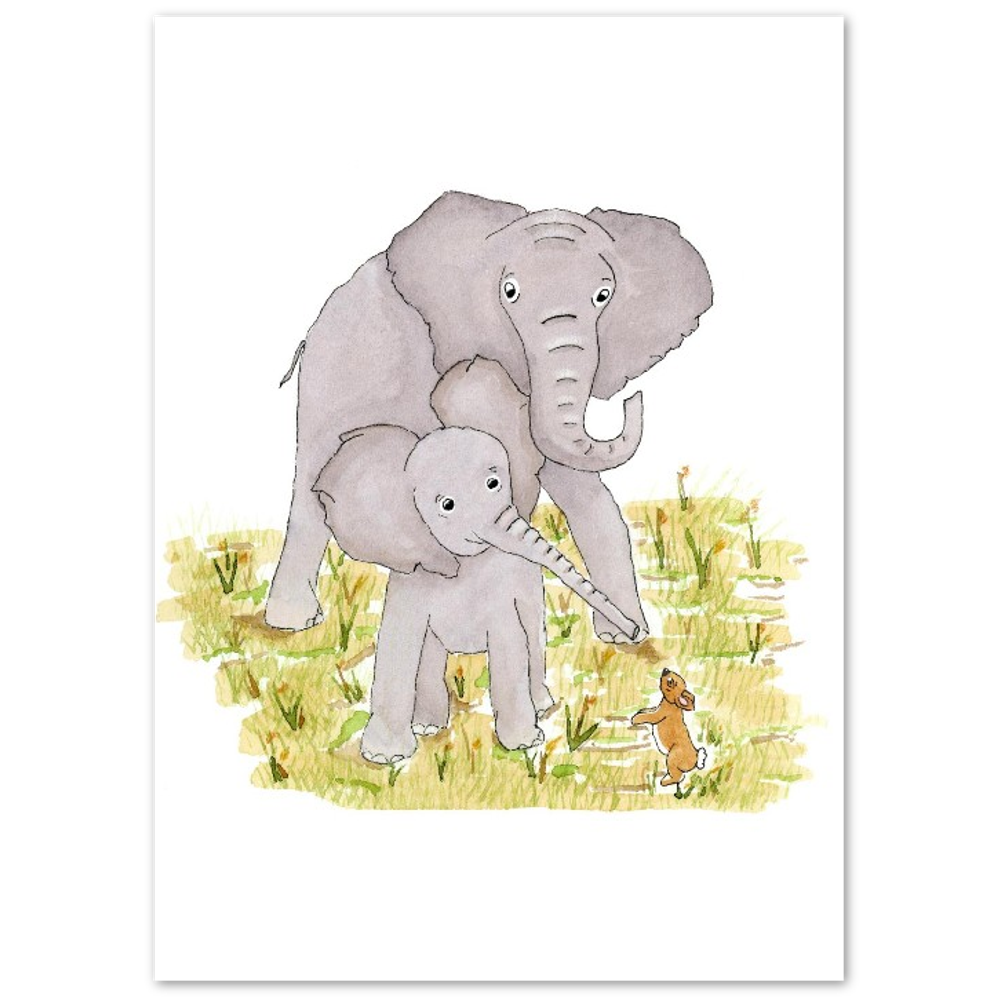Gray Elephant Family Playing in Grass - Fine Art Print